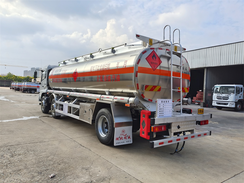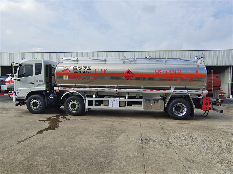 上裝配置:公告容積21.2方,帶輸油泵,可泵進泵出,全套歐標(兩個歐標罐口,一個海底閥,下裝油口、廢氣回收、防溢流探桿及靜電插座),智能海底閥報,一個工具箱,折疊護欄,罐尾一個爬梯,兩個反光板,一個防火帽,兩根與罐長等長輸油管,兩個滅火器,貼3M牌反光條,反光帶,安全告示,三個“易燃液體”標。